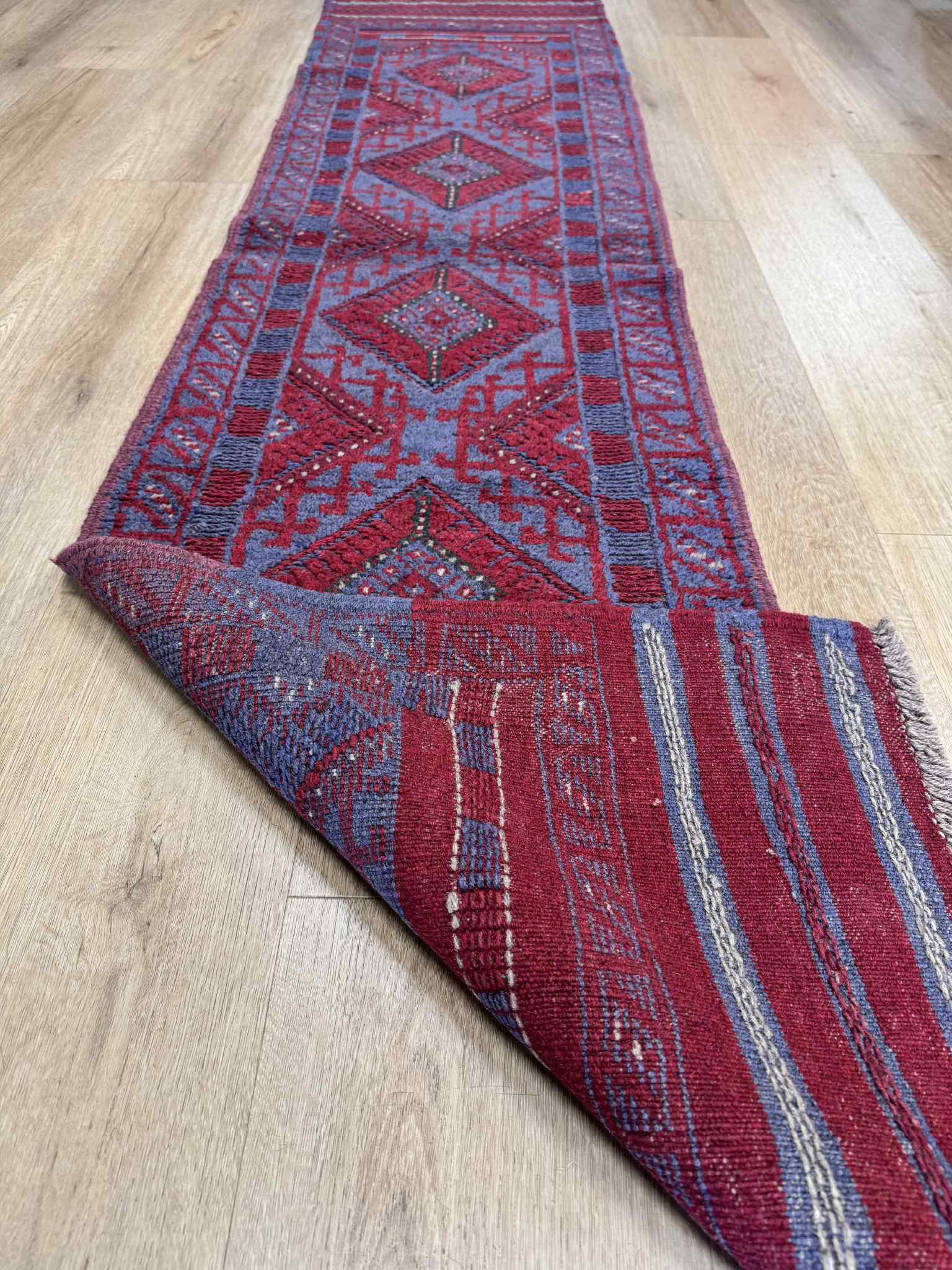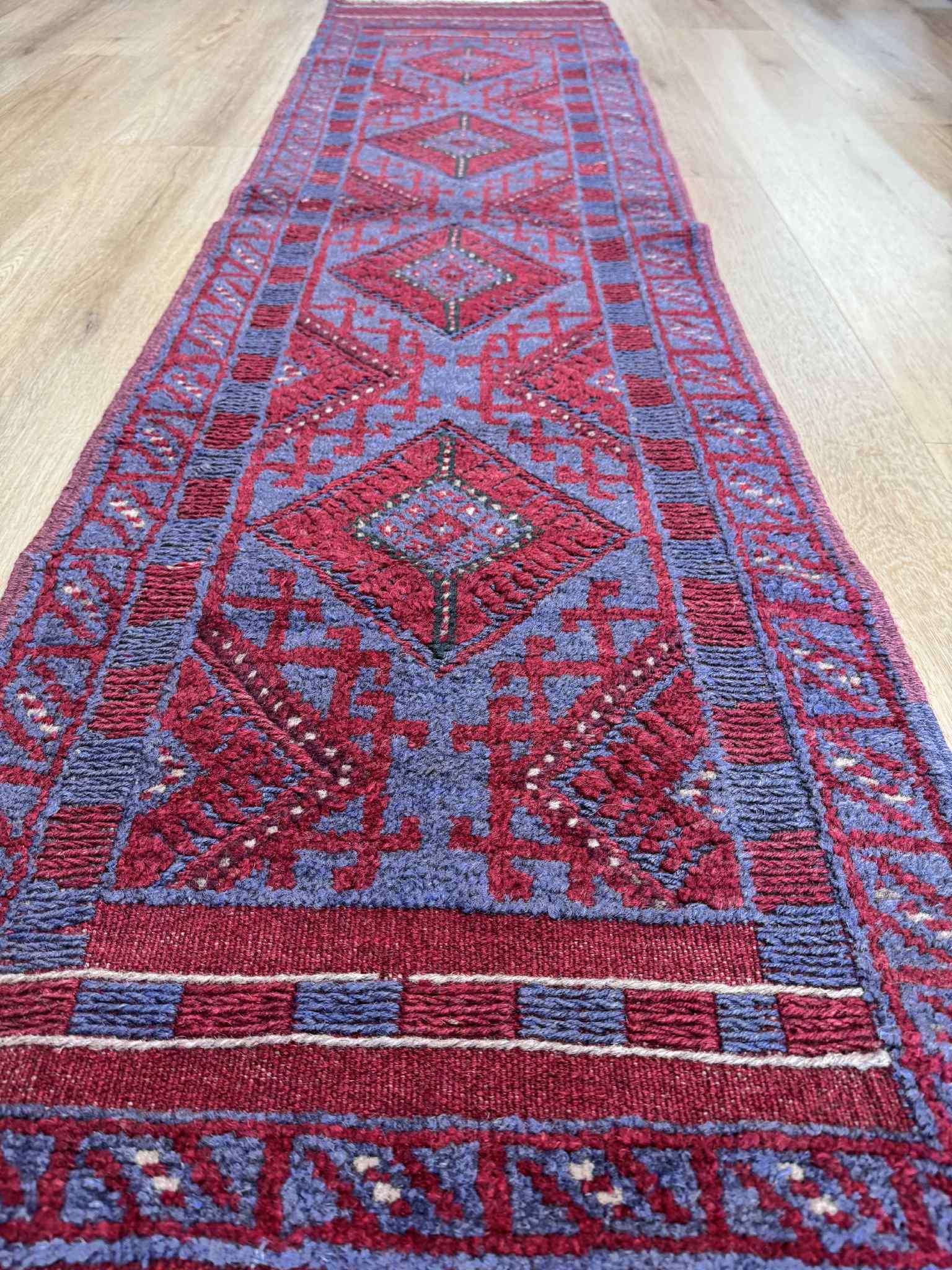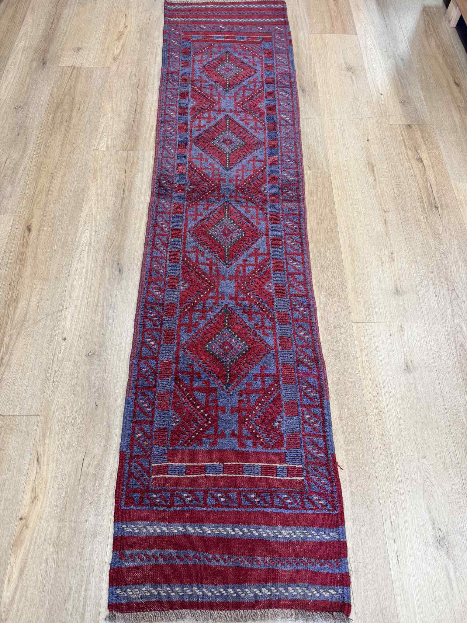 Afghan Hand knotted pure wool Persian Baluchi Hall runner, measuring 258×58cm