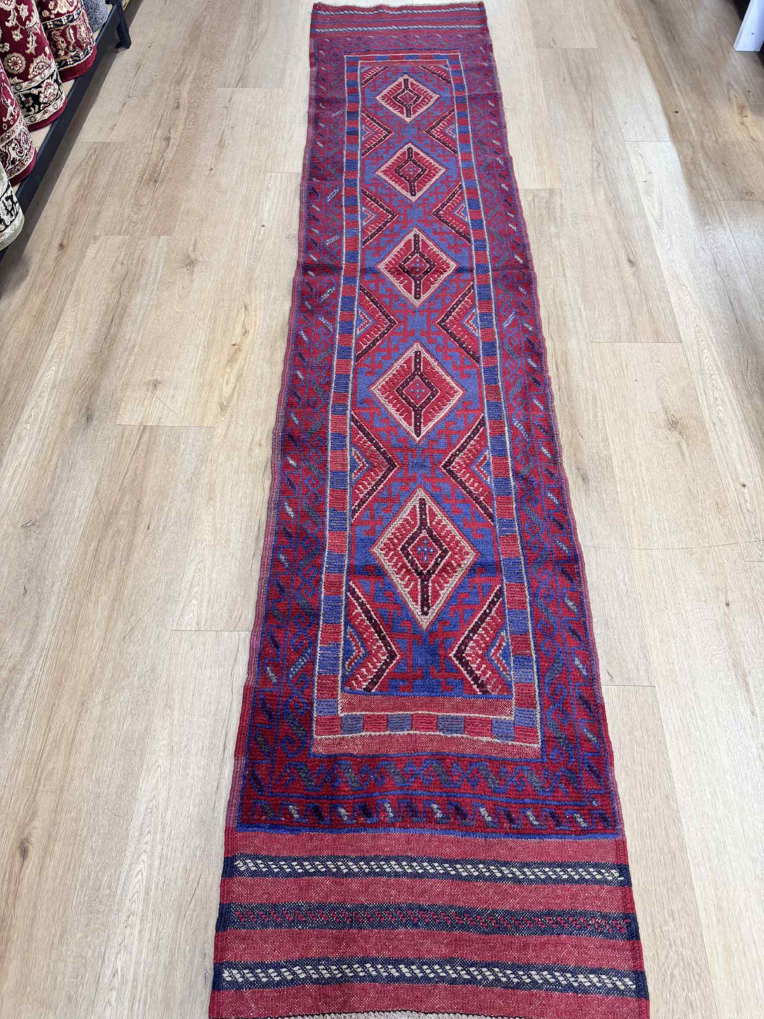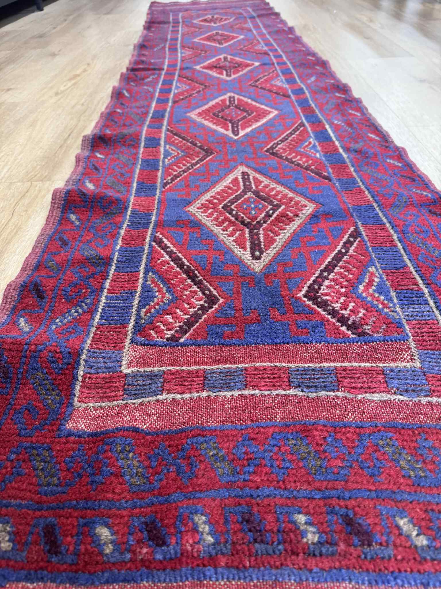 Afghan Hand knotted pure wool Persian Baluchi Hall runner, measuring 326×66cm
