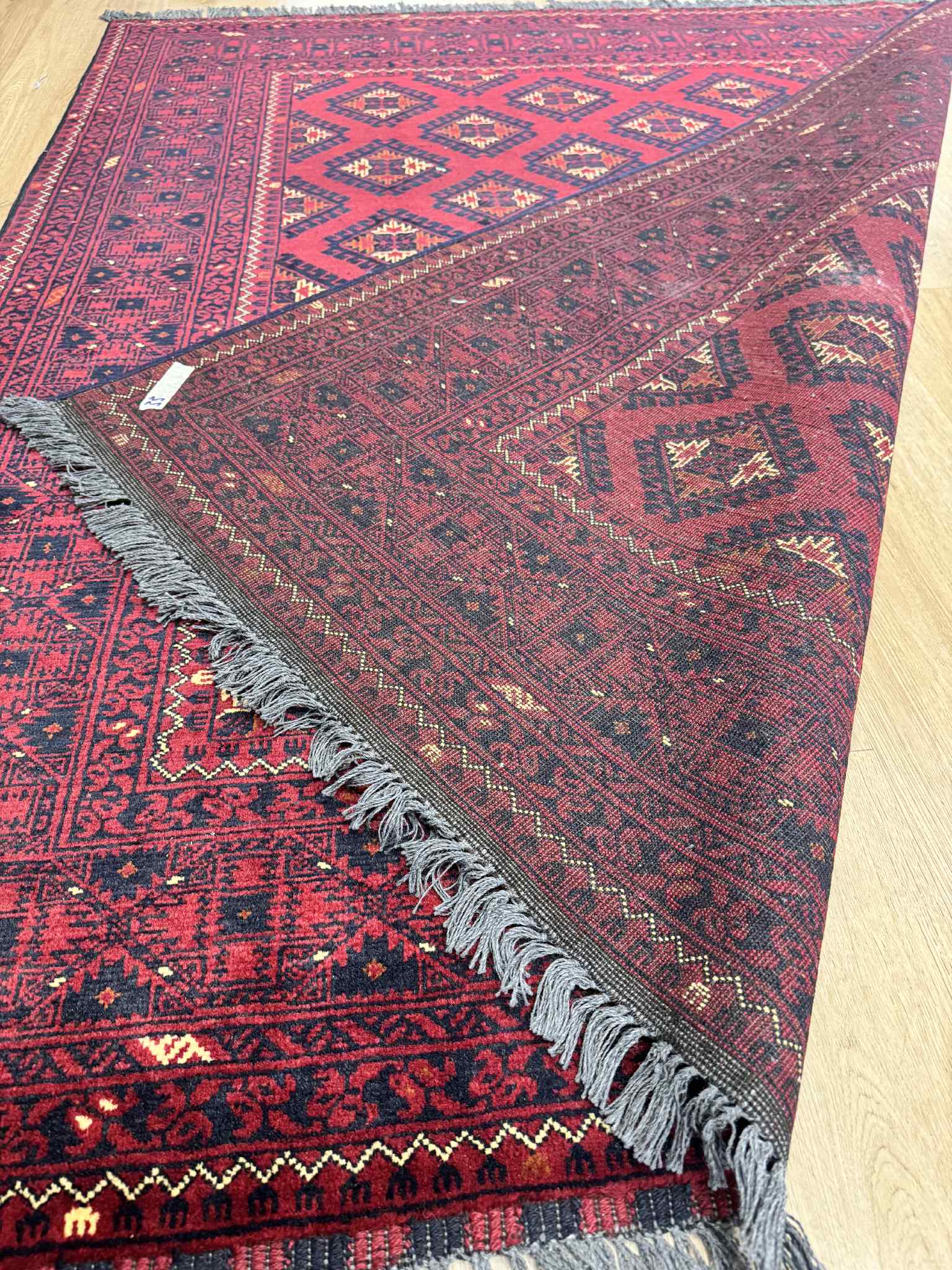 Khal Mohammadi rugs, a timeless classic Afghan rug hand knotted in Faryab district of Northern Afghanistan. This unique combination of rich colors, complimented by perfect ratio of geometric patterns was first founded during 1970s by the legendry rug master Mr. Khal Mohammad. Made from 100% wool often deep red is used as base color in Khal Mohammadi rugs, obtained from natural root dyes.