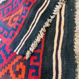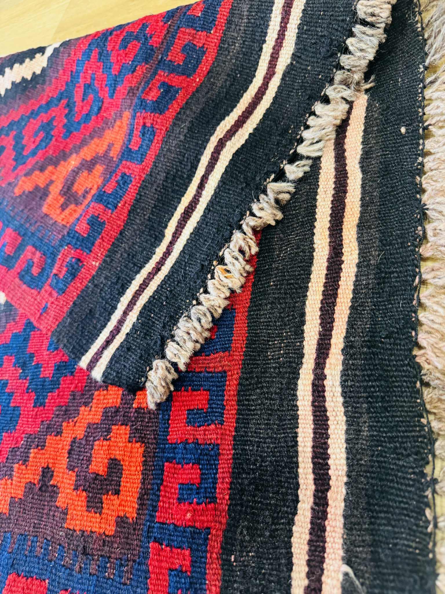 This vibrant Afghan handmade Kilim rug exemplifies the finest traditional craftsmanship. Handwoven from high-quality wool, it offers a durable and textured finish. The Kilim rug features an intricate design with a lively palette of multi-colour hues, blending bold patterns with striking tones. Perfect for adding a touch of cultural richness and unique style to any space, this rug not only enhances your décor but also embodies the rich artistic heritage of Afghan weavers.