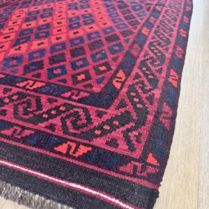 This vibrant Afghan handmade Kilim rug, exemplifies the finest traditional craftsmanship. Handwoven from high-quality wool, it offers a durable and textured finish. The Kilim rug features an intricate design with a lively palette of multi-colour hues, blending bold patterns with striking tones. Perfect for adding a touch of cultural richness and unique style to any space, this rug not only enhances your décor but also embodies the rich artistic heritage of Afghan weavers.